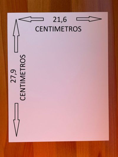 Primero, para saber cual es el lado corto y lado largo, tomaremos una resma de cualquier tamaño, por ejemplo una resma tamaño CARTA, cuyas medidas son 21,6 x 27,9 centímetros. Siendo el lado corto los 21,6 centímetros y el lado largo los 27,9 centímetros, representados en la siguiente imagen: