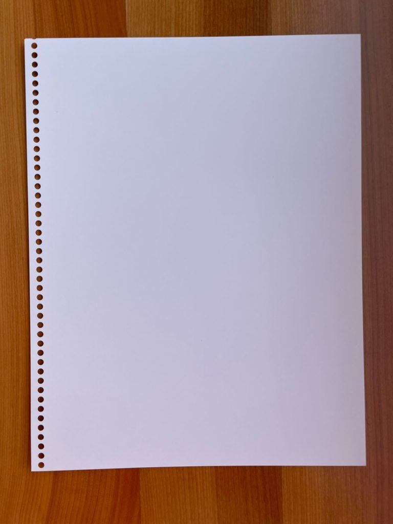 La imagen de abajo corresponde a una hoja tamaño carta perforada para espiral, por el lado largo.